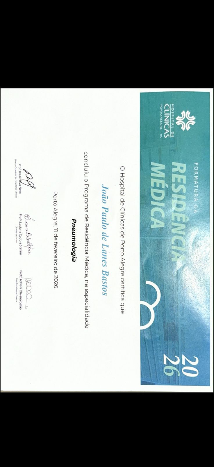Graduado em Medicina pelo Centro Universitário de Valença (UNIFAA). Médico especialista em Clínica Médica tendo completado residência pela Universidade Federal de Pelotas (Ufpel) e Médico especialista em Pneumologia tendo completado residência médica no Hospital de clínicas de Porto Alegre (HCPA). Mestrando no Programa de Pós Graduação em Ciências Pneumológicas pela UFRGS.